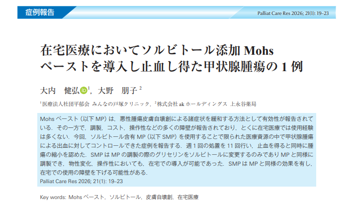 みんなの戸塚クリニック大内医師の在宅緩和ケアにおけるモーズ軟膏の論文が公開されました!